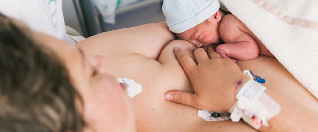 No momento em que o seu bebé nasce, se ele estiver bem, ele é colocado contra si, seja após um parto vaginal ou cesariano, para que possam se encontrar pela primeira vez.